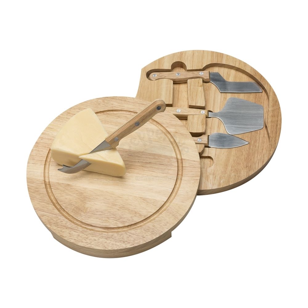 Promocional Kit queijo 5 peças produzido em madeira e aço inox. Para quem gosta de apreciar uma boa gastronomia, nada melhor que um kit de 5 peças ideal para completar sua degustação. Fácil manuseio, portátil e leve. Vem com 2 facas sendo 1 faca com ponta e outra faca reta, 1 garfo, 1 espátula e 1 estojo de madeira personalizado.