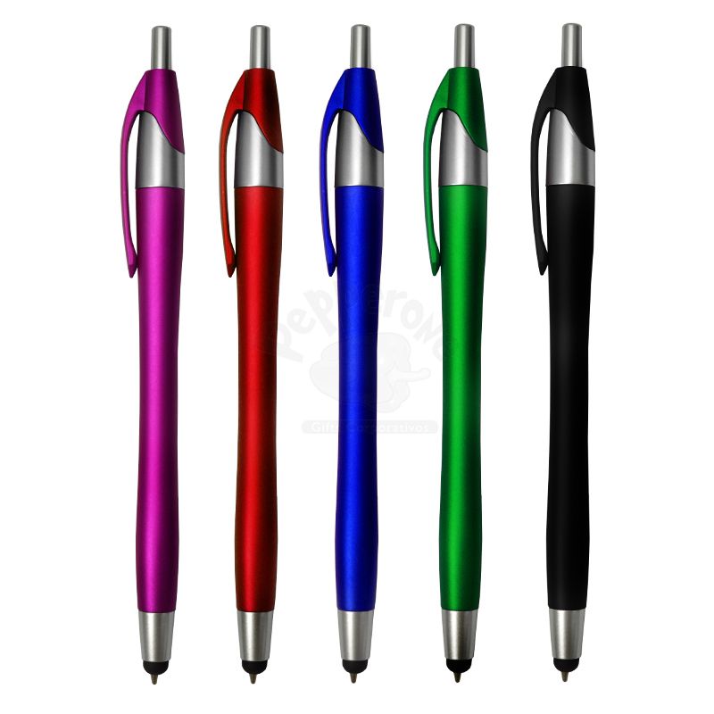 Promocional Caneta Plástica Touch para Tablet com a ponta emborrachada e com clique, sai a ponta da caneta. Consultar as cores