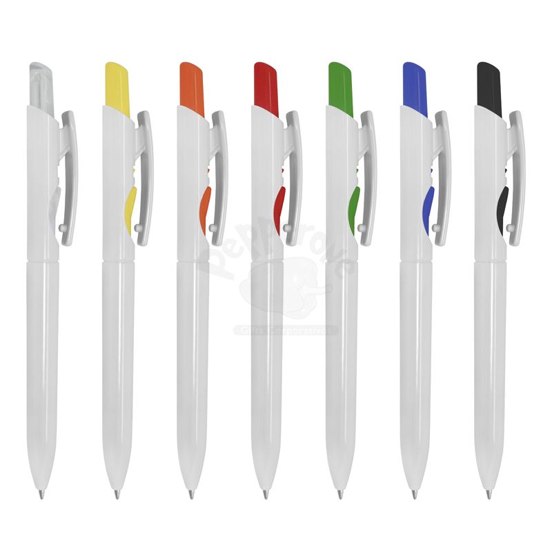 Caneta plástica para brindes com as cores de sua empresa e sua marca. É a melhor opção custo-benefício para serem entregues como brindes.