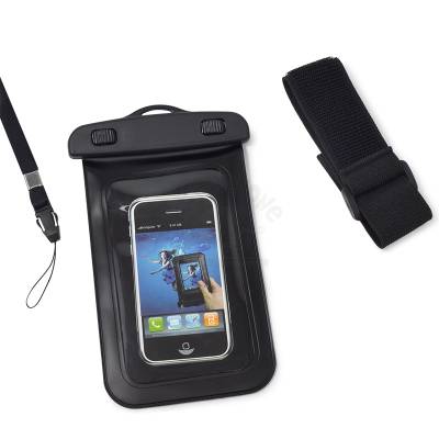 Bolsa a prova D'água para celular para brindes corporativos. É possível acomodar aparelhos com até 4.7 polegadas tipo IPhone 6, Galaxy S4... Acompanha elástico e cordão para pendurar de forma pratica. Altamente resistente para dar mais durabilidade e transparência para usar as funções do aparelho sem dificuldade. Gravação em Silk.