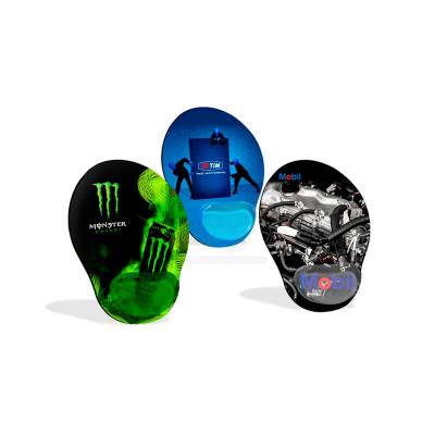 Mouse pad ergonômico personalizado revestido em PVC com acabamento fosco, base inferior emborrachado com 4mm antideslizante e suporte de punho feito em pvc cristal fechado em solda no interior glicerina translucida. Gramatura da impressão 240gr.