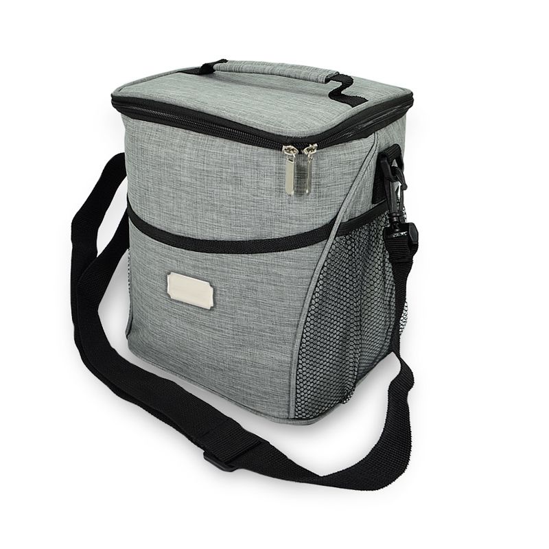 Confeccionada em Nylon poliéster cinza com abertura em zíper superior, pala com 2 cursores e revestimento térmico interno para conservar bebidas e alimentos por mais tempo. Possui bolsos laterais em mesh, alça superior e alça de ombro. Capacidade da bolsa - 12 Litros.