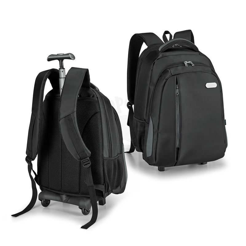 Produzida em Nylon 999, material à prova de água, possui compartimento principal almofadado para notebook de até 17'' e segundo compartimento forrado e com diversos bolsos, bolso frontal com zipper e bolsos laterais com tela. Possui estrutura removível e 2 rodas, puxador extensível em alumínio, com mola (altura o puxador: 550 mm).