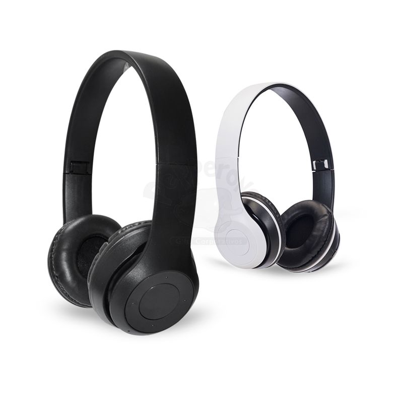 Fone de ouvido bluetooth personalizado produzido em ABS, Possui entrada SLOT para cartão, MP3 player com fone de ouvido sem fio v4.0 de alta qualidade de som estéreo, rádio FM (87 ~ 108 MHZ), bateria Li-ion recarregáve com duração de até 5 horas, faixa de transmissão de até 10 Mt, controle analógico com as funções: volume, atender chamadas, play / pause / stop, botão liga-desliga, transmissão via bluetooth, cabo com 100cm e conector padrão - P2