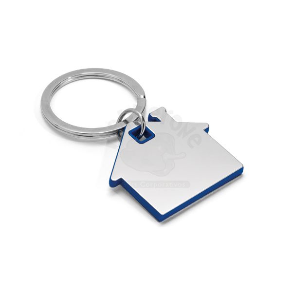 Chaveiro de metal formato casa com bordas coloridas em ABS e argola personalizada.