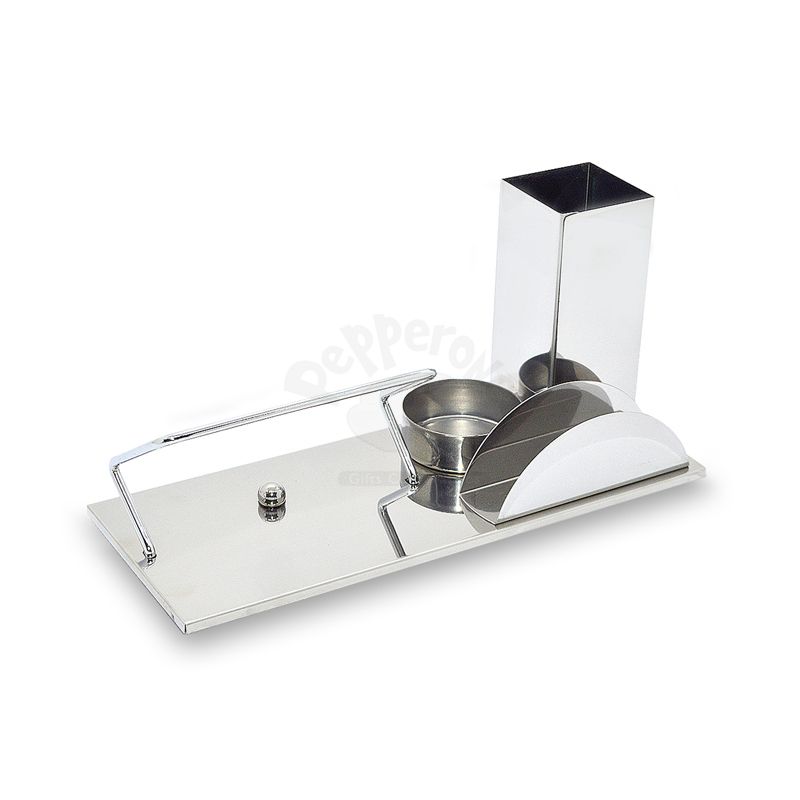 Porta Caneta com Porta Cartão Promocional Porta cartão de mesa personalizado produzido em metal, possui porta clipes, porta caneta e suporte para celular.