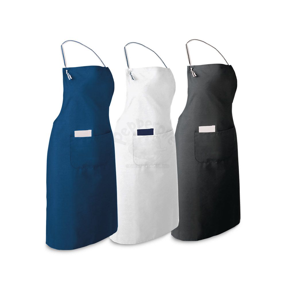 Avental personalizado produzido em algodão e poliéster 150g/m² com alça ajustavel, possui um bolso interno 8 x 14 cm e outro bolso externo 25 x 16 cm. Ideal para eventos corporativos e gastronômicos.