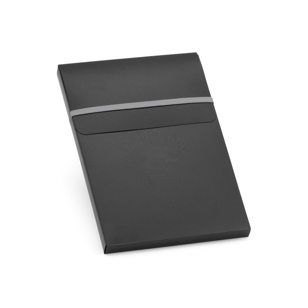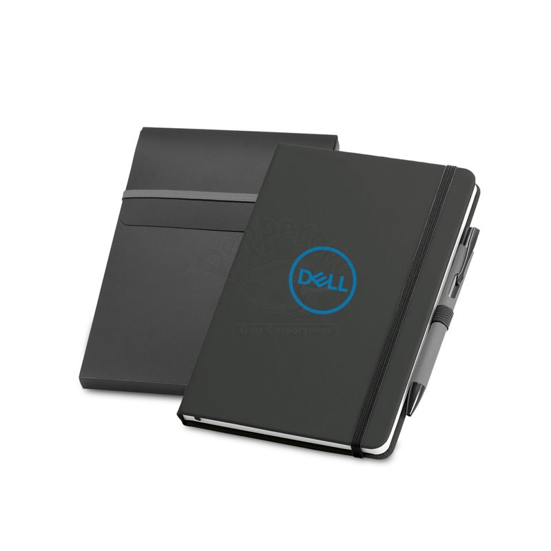 Bloco de anotações personalizado produzido em couro sintético com capa dura, possui 80 folhas não pautadas na cor branca, embalagem de pp em formato de caixa e caneta de metal esferográfica com acionamento por clik. Ideal para divulgar sua empresa em eventos corporativos, brindes personalizados e campanhas promocionais.