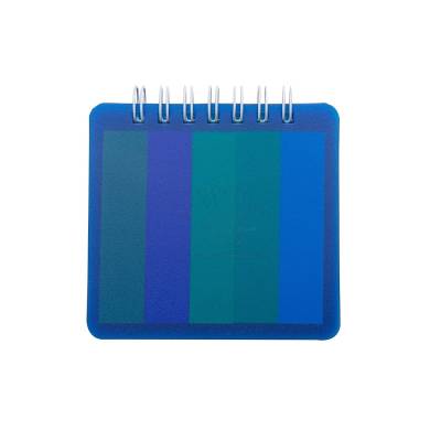 Bloco para anotações personalizado com capa plástica colorida translucida e espiral de metal branco. Possui 5 mini-blocos coloridos com aproximadamente 25 folhas cada um e bloco amarelo com aproximadamente 25 folhas. Ideal para brindes, campanhas promocionais e eventos corporativos.