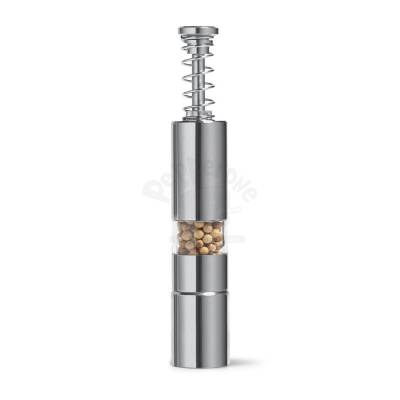 Saleiro/Pimenteiro personalizado produzido em aço inox, possui compartimento para colocação de condimentos em geral. Seu uso é de forma manual para triturar os condimentos rapidamente. Pode ser usado também como saleiro. Ideal para brindes promocionais e eventos corporativos goumet. *Condimentos não acompanham o produto.