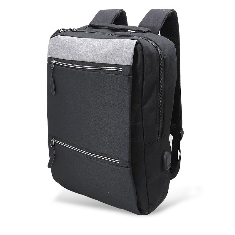 Mochila para notebook personalizada produzida em nylon com compartimento para notebook até 15,6 polegadas. Contém compartimento grande 18L, com divisórias para documentos, eletrônicos e caneta, dois compartimentos frontais com abertura horizontal, bolso lateral e adaptador USB externo com cabo acoplado, permitindo a conexão de um carregador portátil de dentro da mochila e transferência da carga para o lado externo, ocultando o carregador e viabilizando a utilização do celular durante o processo. Contém zíperes com pegadores plásticos, alça de mão em nylon e alças para as costas ajustáveis com revestimento espumado antitranspirante. Ideal para brindes promocionais e eventos corporativos. Power Bank não acompanha o produto. Obs: Para a entrada lateral USB funcionar como carregador, é necessário a aquisição de um de nossos Power Banks. * Imagem ilustrativa.