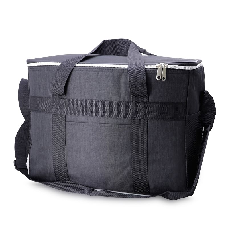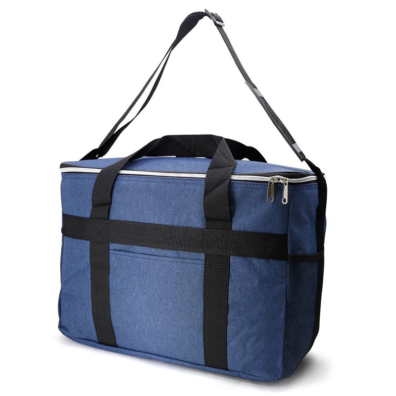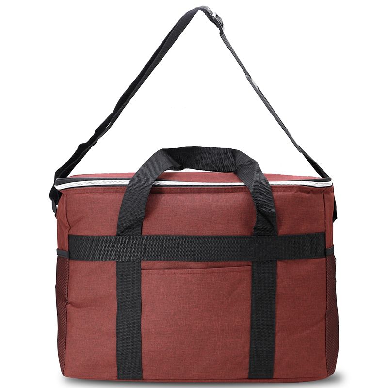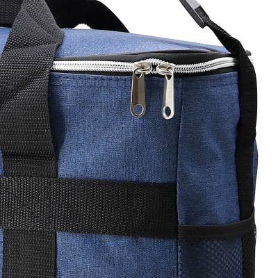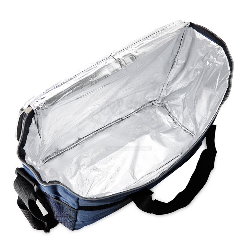 Bolsa térmica personalizada produzida em nylon. Possui área interna com revestimento térmico ideal para manter / conservar a temperatura dos alimentos e bebidas por mais tempo, bolso frontal externo, tampa com fechamento por zíper duplo, alça ajustável de ombro e alça de mão para transporte. Ideal para brindes promocionais e eventos