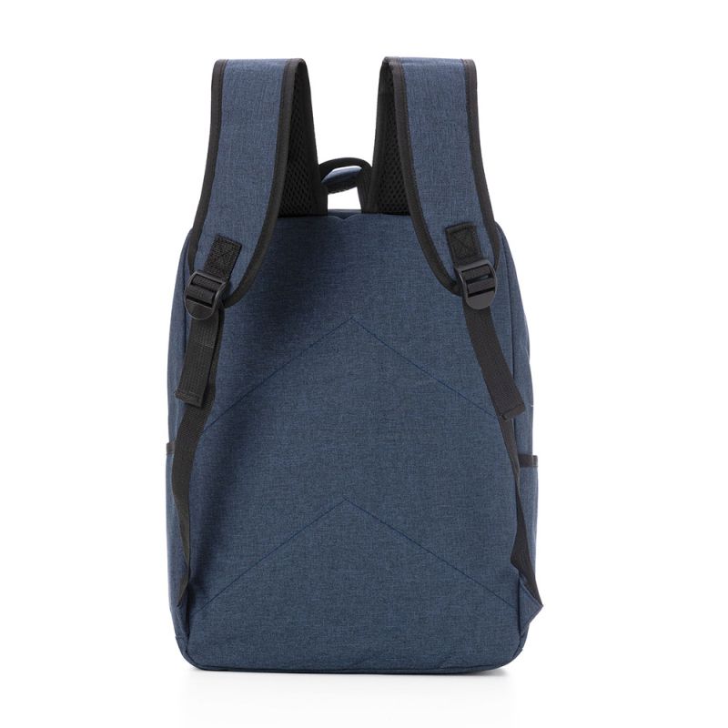 Mochila para notebook personalizada produzida em poliéster. Possui compartimento interno para notebook de 15 Polegadas, cursores de metal, 3 bolsos frontais com ziper, 2 bolsos laterais, alça de mão e ombro acolchoadas. Ideal para brindes promocionais e eventos corporativos.