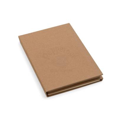 Bloco de anotaçoes personalziado produzido em papel kraft, possui 1 bloco de anotações com 40 folhas pautadas bege; 5 sticky notes colorido com 25 folhas cada, 1 bloco de anotações adesivo 7,5cm x 7,5cm amarelo com 25 folhas, 1Porta Cartão,1 Régua de 15cm de bambu, 1 Apontador para lápis de bambu, 1 borracha, 1 Caneta de papelão com detalhes em plástico, 2 Lápis de bambu e 1 compartimento para cartão. Imagem Ilustrativa.