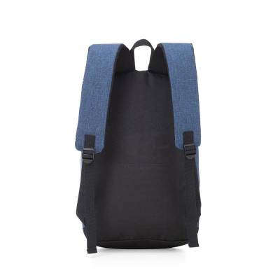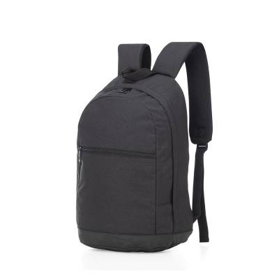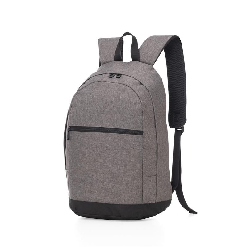 Mochila para notebook personalizada produzida em tecido poliéster, possui parte externa com bolso frontal com zíper, alça de mão, alça de ombro acolchoada, parte interna com compartimento para notebook de até 16.5 polegadas, alça de mão e alças ajustáveis. Ideal para brindes promocionais e eventos corporativos. Imagem ilustrativa.