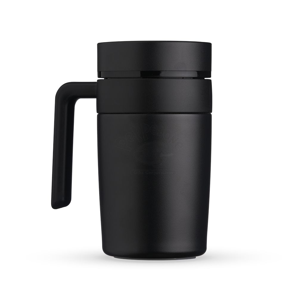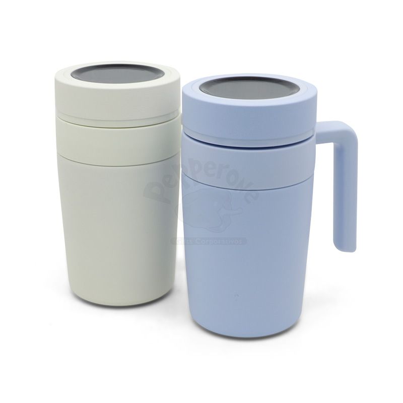 Caneca térmica personalizada em inox com pintura personalizada e capacidade para 500ml. Possui infusor de chá em metal, tampa rosqueável com anel vedante e display em LED com termômetro digital na tampa para indicar a temperatura do líquido. Ideal para brindes promocionais e eventos corporativos.