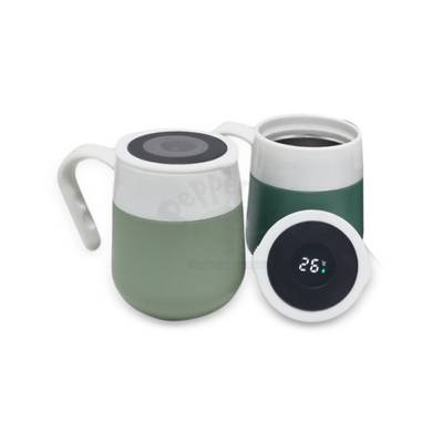 Caneca térmica personalizada produzida em inox com capacidade para 500ml, Possui display LED com termômetro digital na tampa para indicar a temperatura do líquido e tampa rosqueável com anel de vedação. Ideal para brindes promocionais e eventos corporativos.