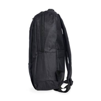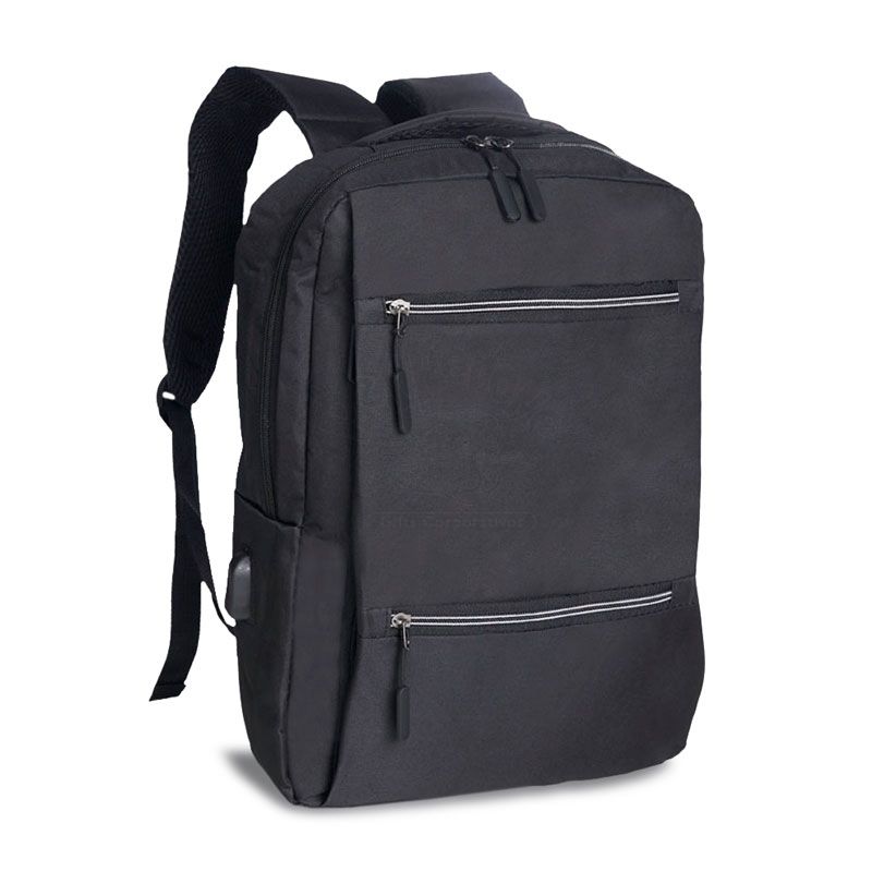 Mochila confeccionada em nylon com compartimento para notebook até 15,6 polegadas. Contém compartimento grande com divisórias para documentos, eletrônicos e caneta, dois compartimentos frontais com abertura horizontal, bolso lateral e adaptador USB externo com cabo acoplado, permitindo a conexão de um carregador portátil de dentro da mochila e transferência da carga para o lado externo, ocultando o carregador e viabilizando a utilização do celular durante o processo. Contém zíperes com pegadores plásticos, alça de mão em nylon, alças para as costas ajustáveis com revestimento espumado antitranspirante e alça horizontal para encaixe em malas de viagem. Ideal para brindes promocionais e eventos corporativos. Imagem ilustrativa.