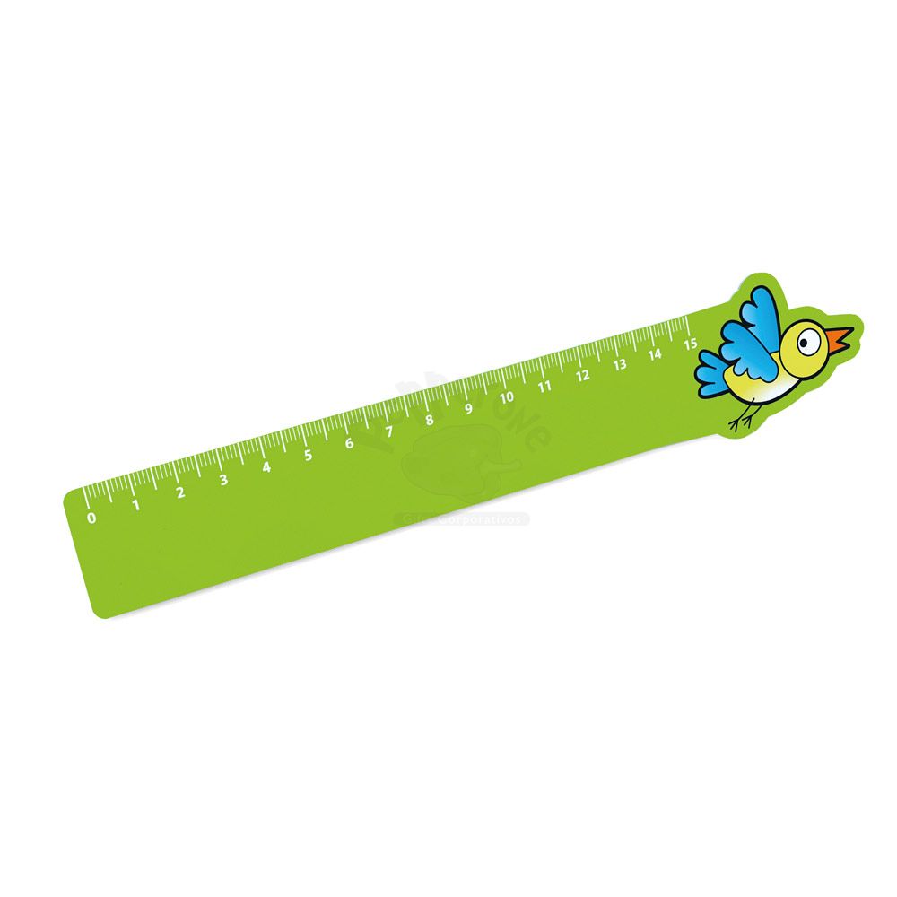 Régua com escala de 15 cm personalizada com desenhos infantis de animais. ( Gato, Cachorro e Pássaro) Produzida em PP flexível e escala impressa em branco. Pode ser utilizado tanto na escola quanto em demais trabalhos diários. Ideal para brindes promocionais e eventos corporativos.