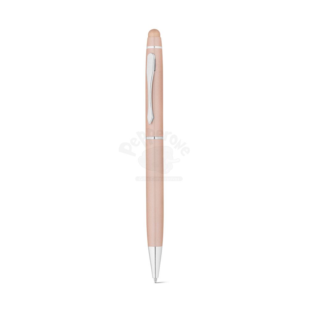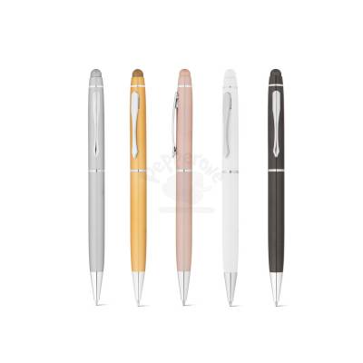 Esferográfica em metal com ponteira touch. Fornecida com estojo de oferta desmontado.