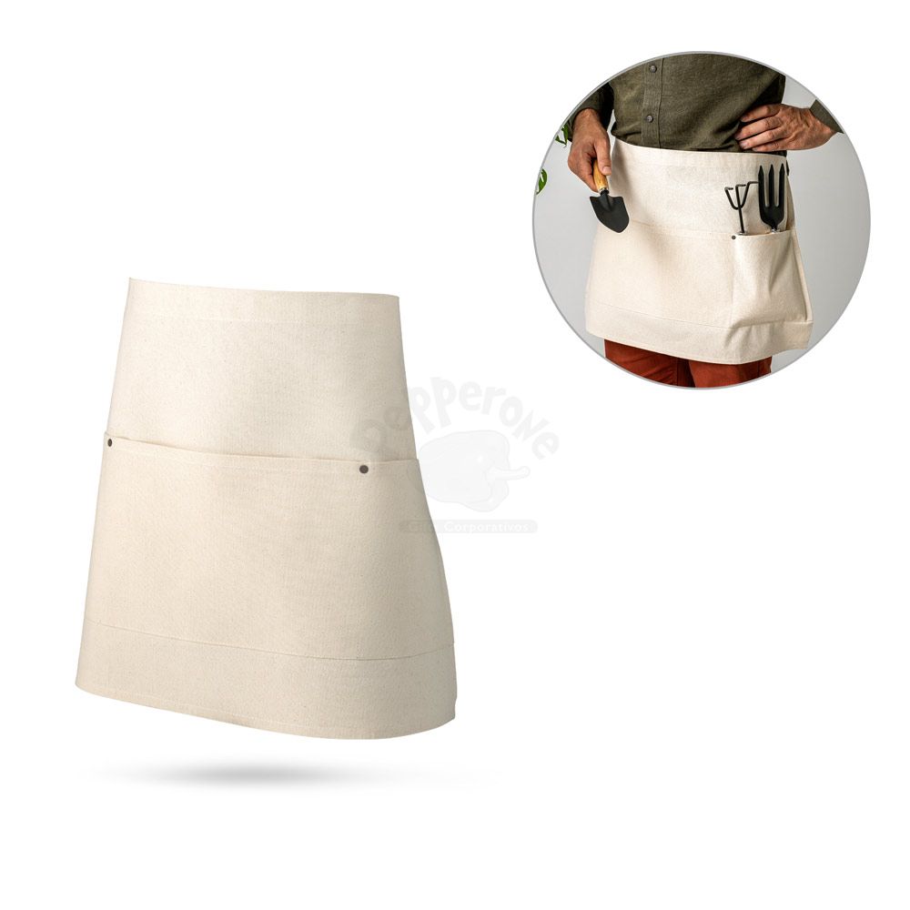 Avental multiusos em lona de algodão (260 g/m²) com 3 bolsos frontais e fita para amarrar à cintura.