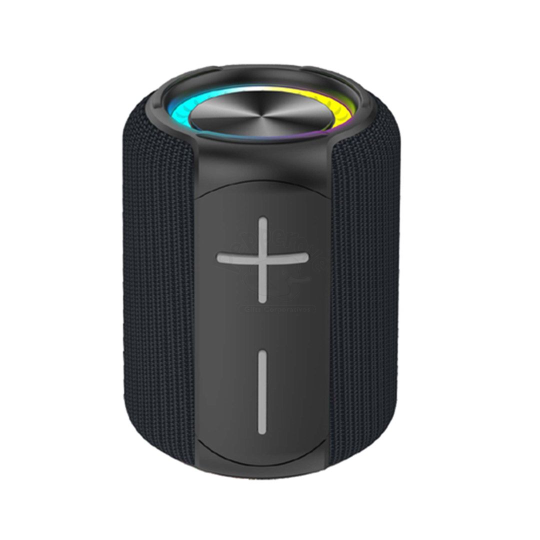 Caixinha de som Bluetooth em tecido, com potência de 10W e bateria com duração até 10 horas. Possui IPX6, ou seja, é resistente a alguns jatos e respingos d’água, mas não pode ser imersa na água. Possui uma alça de corda para que você leve aonde quiser, tornando a caixinha de som portátil.
