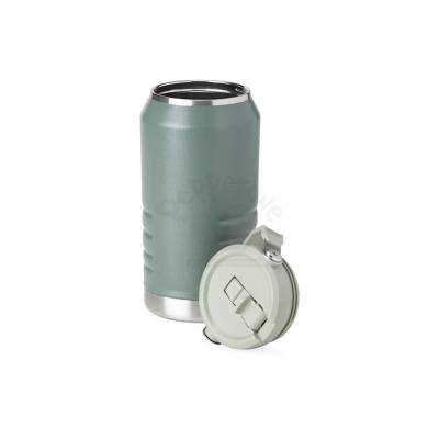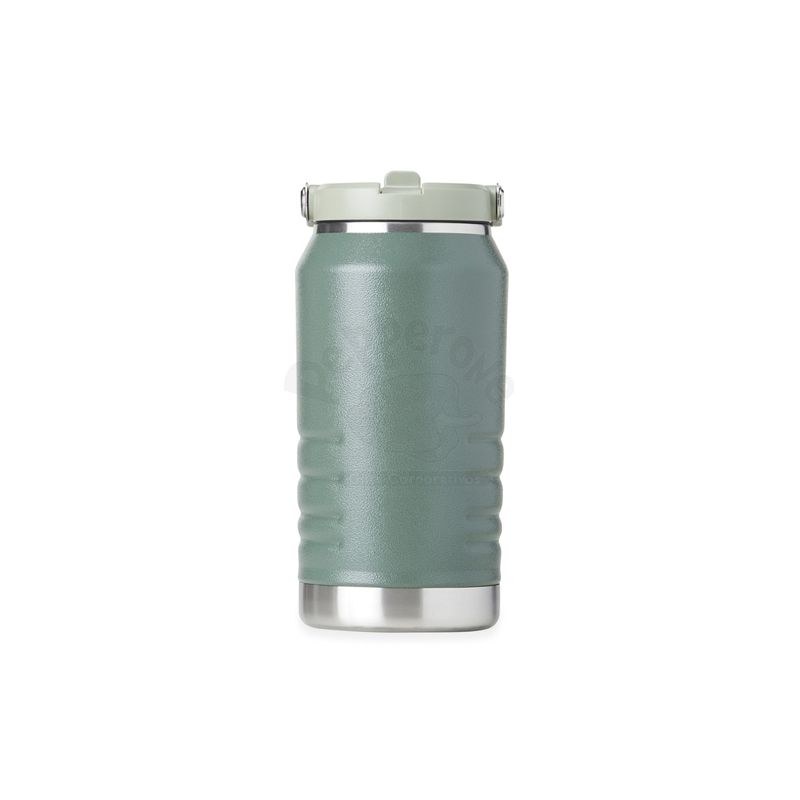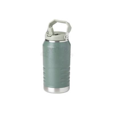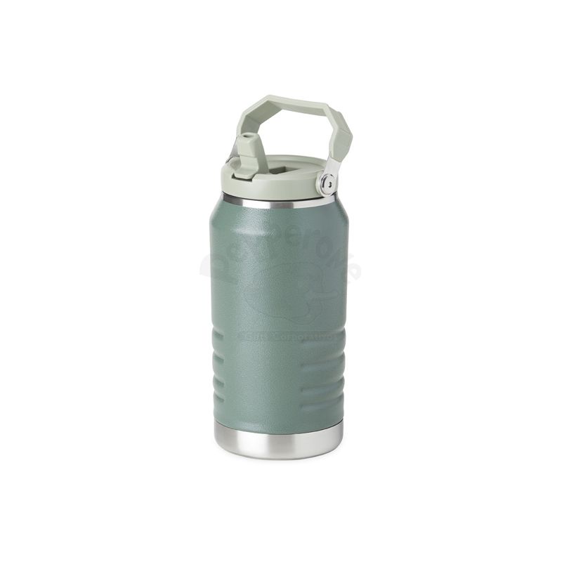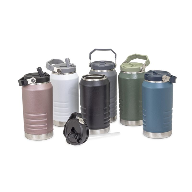 Garrafa térmica feita em inox com parede dupla, capacidade de 1,1 litros. Com alça para transporte, a tampa contém bico flip e canudo interno.
