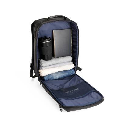 Mochila para notebook produzida em tecido de poliéster, alça de ombro acolchoada, aceita notebooks de até 15,6”. Design ergonômico, alça de ombro ajustável, porta USB na lateral da mochila, possui engate para mala de viagem, bolso frontal com zíper para acesso rápido.