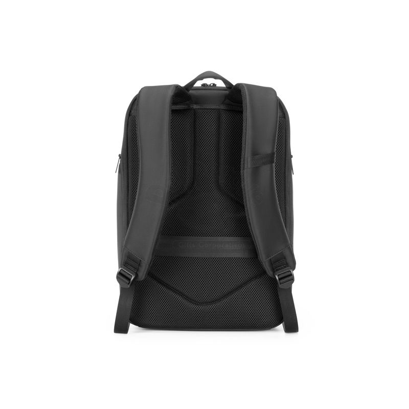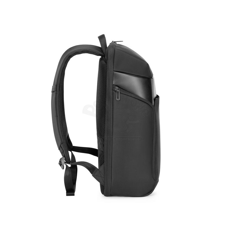 Mochila Premium, adequada para viagens de negócios, feito de tecido de poliéster, alças de ombro acolchoadas, aceita notebook de até 15,6”, porta USB na lateral, engate para mala de viagem, com dois bolsos nas laterais.