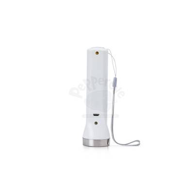 Lanterna plástica recarregável personalizada, com um LED com 3 estágios de iluminação e dois LED laterais com função luminária. Possui cordão de nylon para transporte e acompanha cabo USB. Ideal para divulgar sua empresa em eventos corporativos, brindes personalizados e campanhas promocionais.