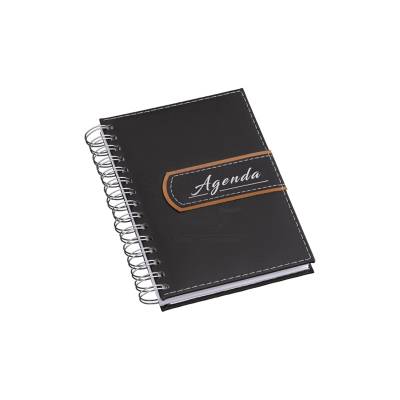 Agenda diária 2024 personalizada em couro sintético com wire-o. Possui "bolso" plástico, página para dados pessoais, calendário 2023 a 2025, mapa do Brasil, mapa global, índice telefônico e planejamento. A agenda possui o tamanho perfeito para levar em sua bolsa ou mochila sem ocupar espaço, perfeito para armazenar anotações e a organização do dia a dia, em casa ou no trabalho. Ideal para brindes promocionais e eventos corporativos.