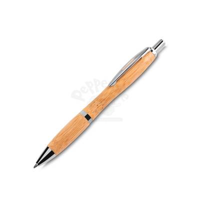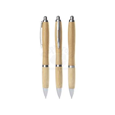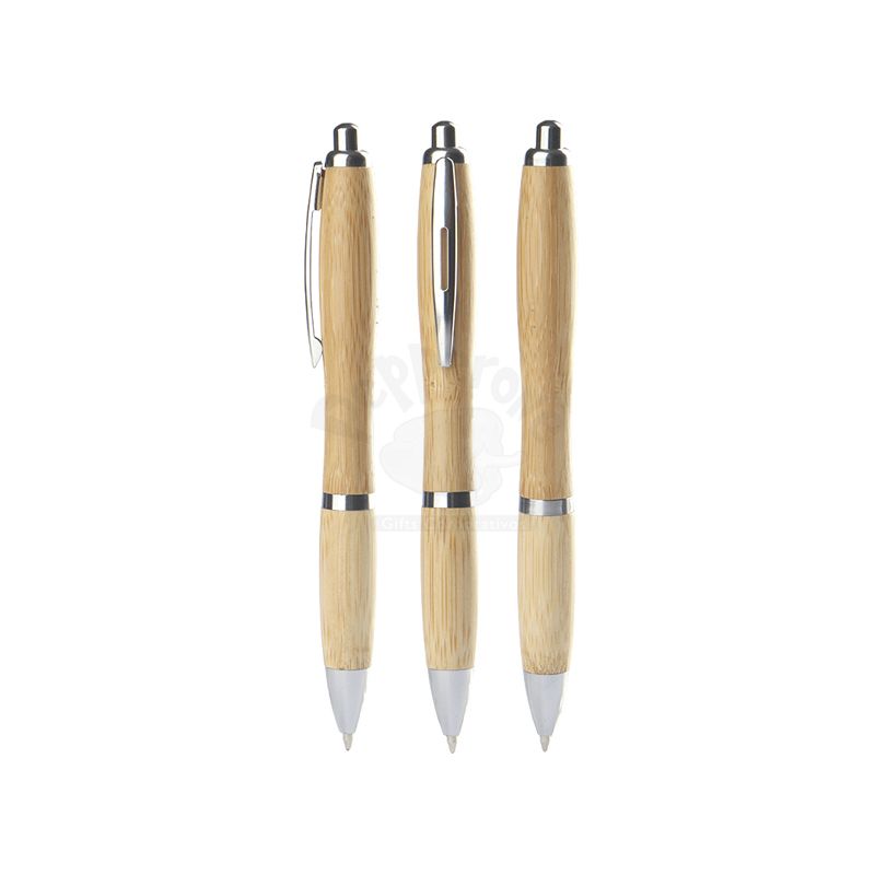 Caneta ecológica personalizada produzida em bambu com clip e detalhes em metal, possui esferográfica azul e acionamento da escrita por click. Produto inovador visando campanhas que defendem um mundo mais sustentável. Acompanha estojo de papel impresso com imitação em bambu. Ideal para divulgar sua empresa em eventos corporativos, brindes personalizados e campanhas promocionais.