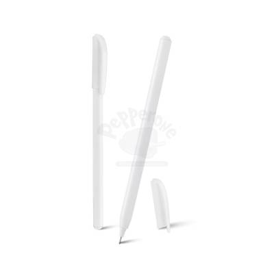 Caneta plástica personalizada com tampa, clip injetado na mesma, esferográfica cor azul de escrita fina. Ideal para divulgar sua empresa em eventos corporativos, brindes personalizados e campanhas.