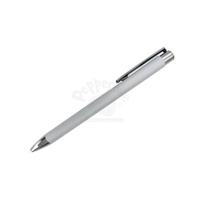 Caneta em metal com acabamento brilhante, porém na cor prata acabamento fosco, possui acionamento por clique e esferográfica na cor azul com uma escrita macia e confortável. Ideal para divulgar sua empresa em eventos corporativos, brindes personalizados e campanhas promocionais.