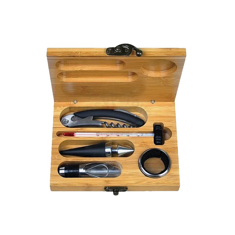 Kit Vinho em Estojo de Bambu 6 Peças Personalizado