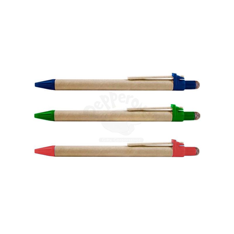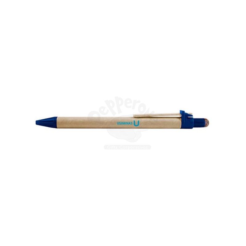 Caneta ecológica com semente, produzida em 100% papel reciclado, possui ponteira em material plástico biodegradável, escrita na cor azul, acionamento no click. Após receber a sua caneta semente retire o compartimento com sementes e plante ele diretamente em solo preparado. Em poucos dias as sementes estarão germinando e você contribuiu com a natureza.