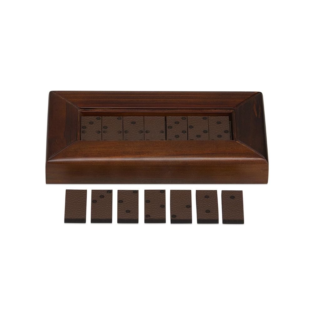Jogo de dominó personalizado combina entretenimento e um compromisso genuíno com a preservação ambiental. Cada peça é esculpida em madeira proveniente de reflorestamento. Com peças de recouro e acabamento em veludo, o jogo de dominó combina diversão e elegância. Permita-se mergulhar nessa experiência refinada e transforme seus momento