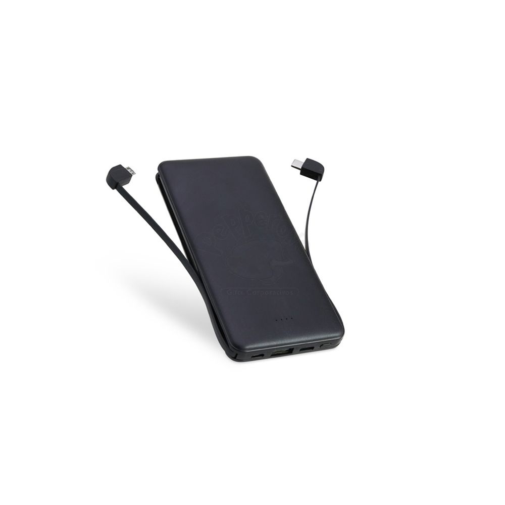 Carregador personalizado portátil, é um objeto de design minimalista e dadas as suas características técnicas pode ser usado em viagens (como bateria portátil). Bateria com indicador de carga LED, possibilita o carregamento de até 2 dispositivos em simultâneo, com entrada micro USB e saídas tipo-C, micro USB e USB e ainda adaptador lightning. Capacidade de 5.000 mAh. Fornecida em caixa presente com cabo incluso. Tendo a parte externa confeccionada em plástico resistente, podendo personalizar com o seu logo e trazer destaque a sua empresa. O carregador ideal para brindes corporativos e eventos promocionais.