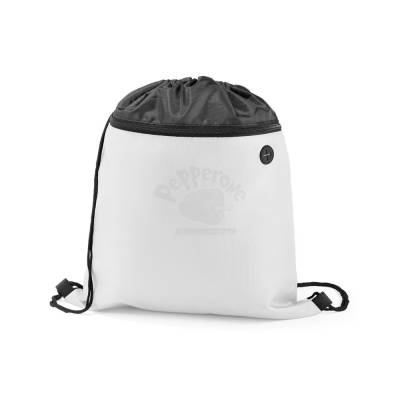Mochila saco personalizada produzida em nylon 210 com alças de algodão, possui bolso frontal e saída para o fone de ouvido. Ideal para eventos esportivos, brindes promocionais e eventos corporativos.