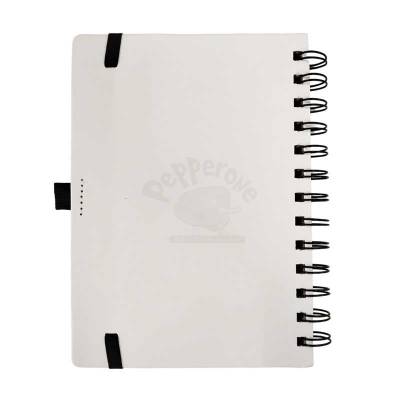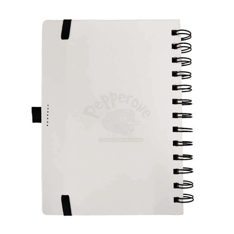 Caderno de anotações em ABS reciclável com aspiral e suporte para caneta. Com capa frontal em textura que imita ''pedra'' e capa traseira na cor branca, suas folhas são impermeáveis e resistentes a rasgos, miolo com 70 folhas pautadas na cor branca. Acompanha caneta.