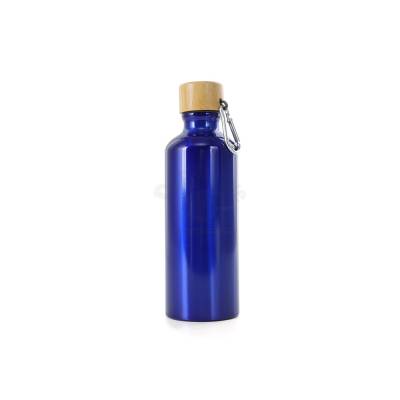 Garrafa de alumínio com capacidade de 500ml. Possui tampa de bambu e acompanha mosquetão de alumínio.