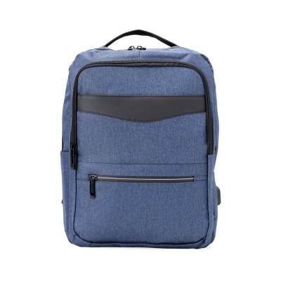Mochila de nylon 22 Litros com detalhes em couro sintético e três compartimentos, sendo o principal com bolso para notebook 15,6. Mochila possui bolso lateral e suporte externo usb.