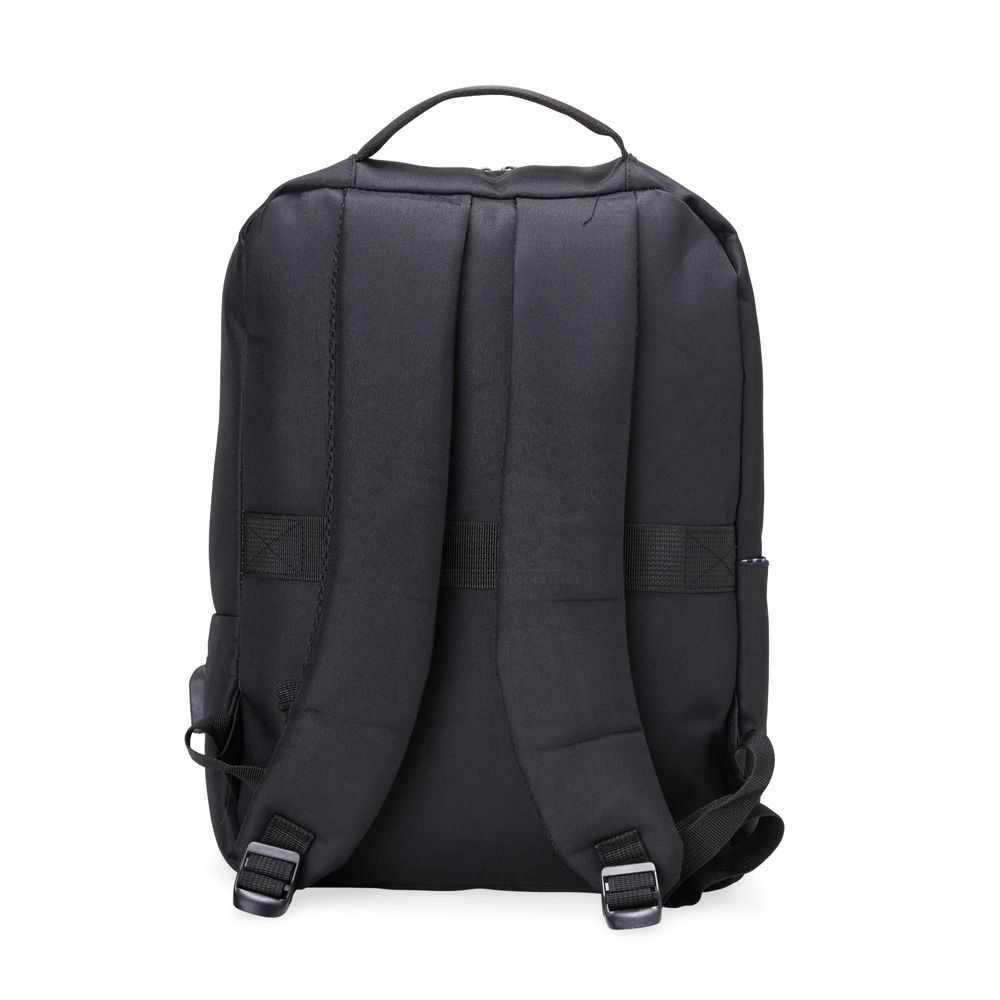 Mochila de nylon 23 Litros com 3 compartimentos, sendo o principal com bolso para notebook 15,6. Com divisórias internas para acessórios, a mochila possui bolso lateral, suporte externo USB e alça para encaixe em malas e viagens.