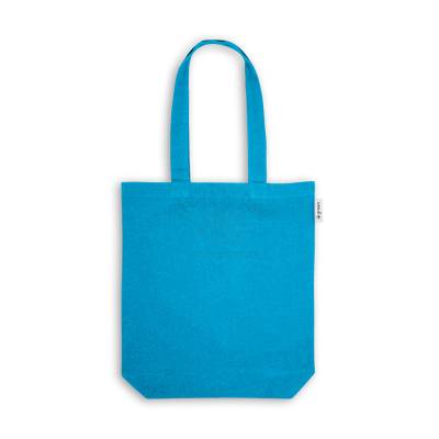 Sacola em algodão (220 g/m²) composta por 50% algodão e 50% algodão reciclado, com alças de 62 cm.