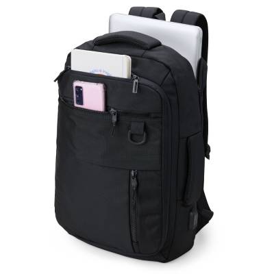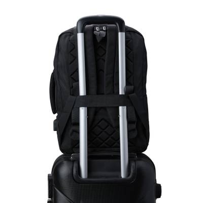 Mochila confeccionada em Nylon 20 Litros com 4 compartimentos, sendo o principal com bolso para notebook 15,6. Possui um bolso externo, bolsos e divisórias internas para acessórios, a mochila possui suporte externo USB, alça com bolso integrado para cartões, alça para engate em malas de viagem e duas alças de mãos, sendo um delas para o transporte da mochila no formato pasta.