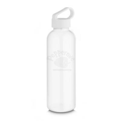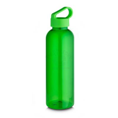 Garrafa *RPET com capacidade de até 550ml, tampa plástica com alça integrada. *RPET: Tereftalato de polietileno reciclado