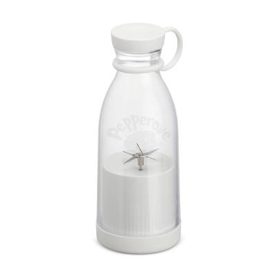 Mini liquidificador portátil com capacidade de 380ml. Contém tampa rosqueável plástica com alça emborrachada para transporte, ventoinha inox 6 lâminas e base plástica com borrachas antiderrapantes. Acompanha cabo USB. Obs. (Para o funcionamento do produto a quantidade total de frutas/água adicionadas não deve exceder 300ml).