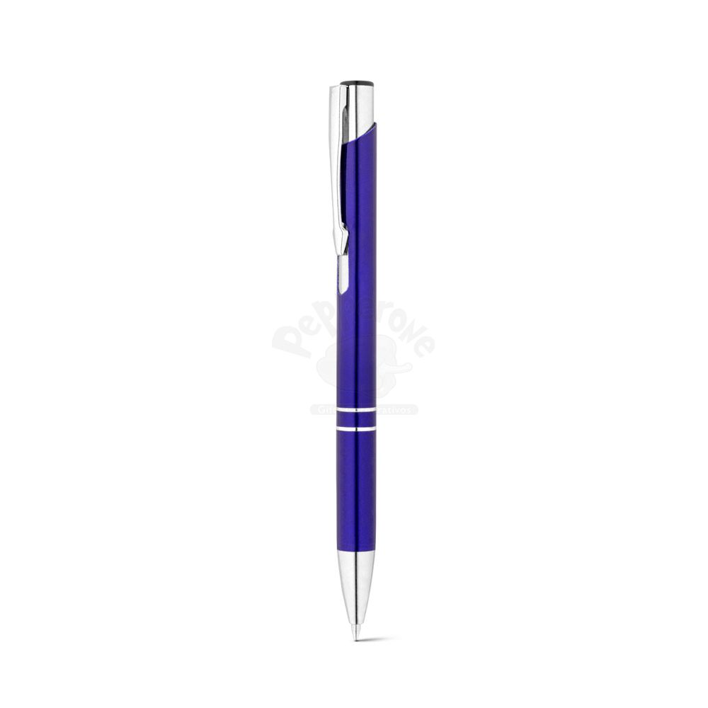 Esferográfica em alumínio 100% reciclado. Escrita azul.