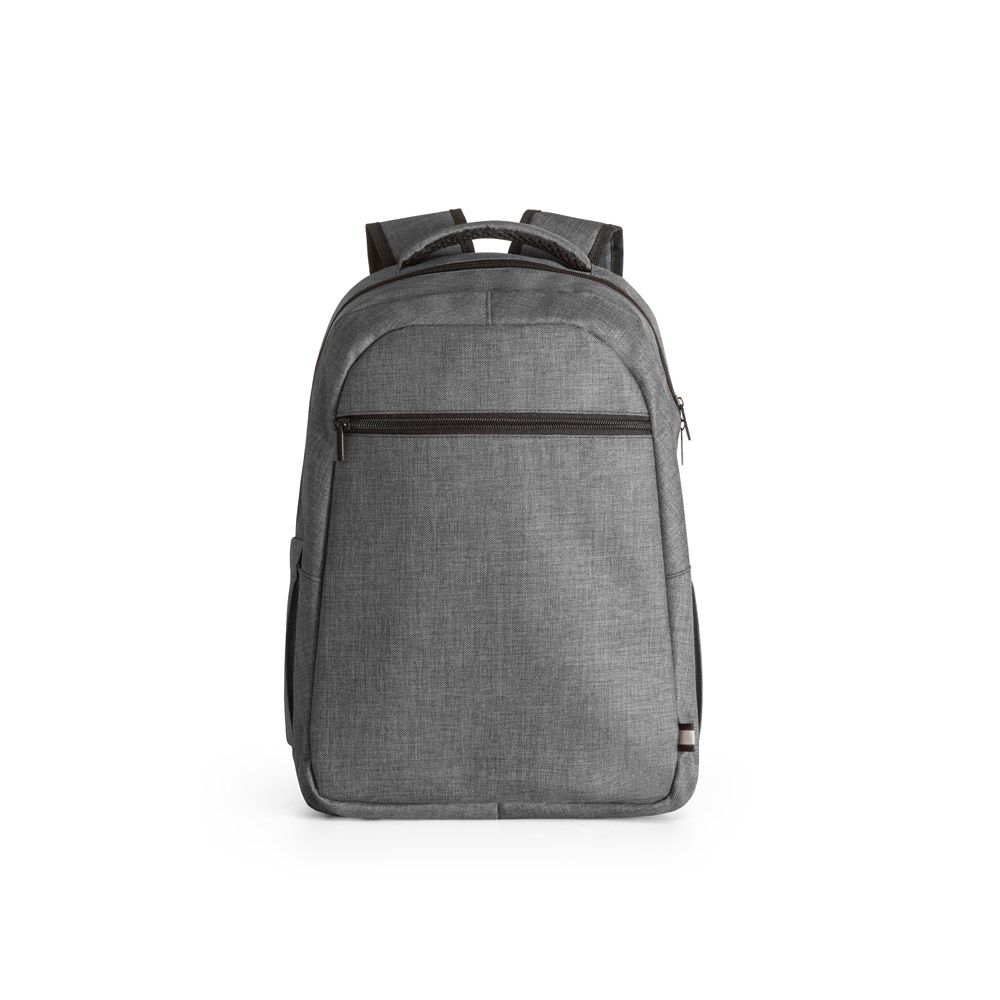 Mochila para notebook em 600D de alta densidade com compartimento principal para notebook até 15". Contém bolsos laterais em tela e um bolso frontal com zíper. Parte posterior e alças almofadadas que incorporam alça para trolley em caso de necessidade. Elemento refletor na parte frontal da mochila.