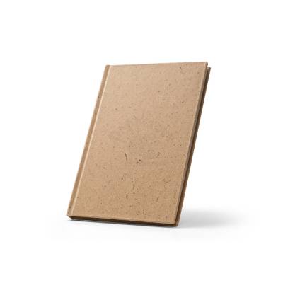 Caderno A5 de capa dura em casca de coco (60%) e pedaços de algodão reciclado (40%). O interior com 80 folhas pautadas de papel coco 100% reciclado. Um caderno que se distingue por dar uma segunda vida a materiais que podem ser reciclados.